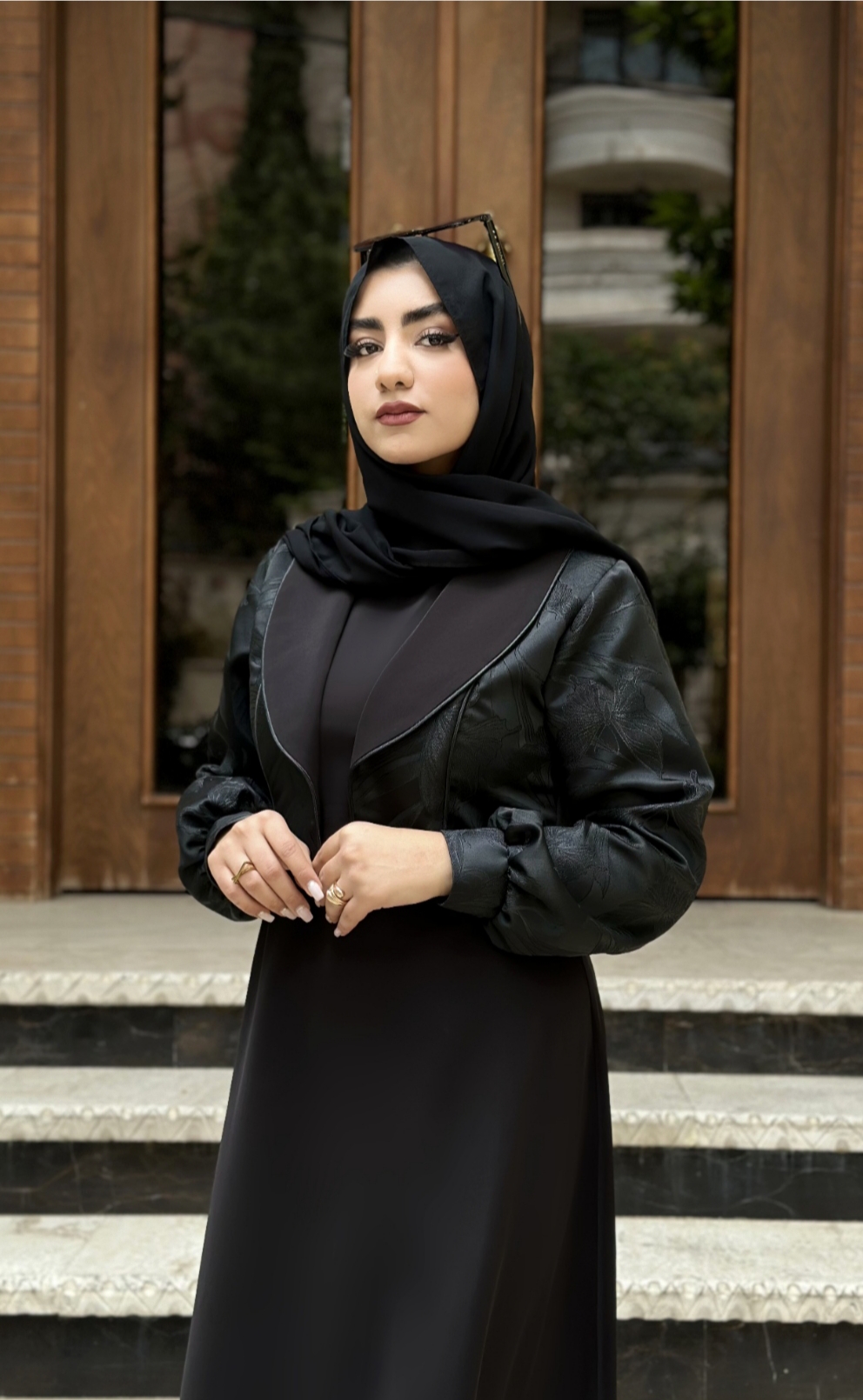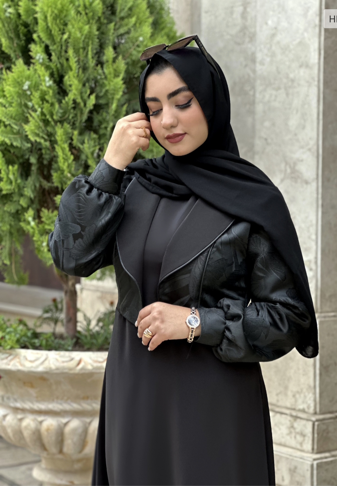 عبای مجلسی زنانه ماهلین مدل ژاکارد ترک با کرپ سوپر الیزای درجه یک